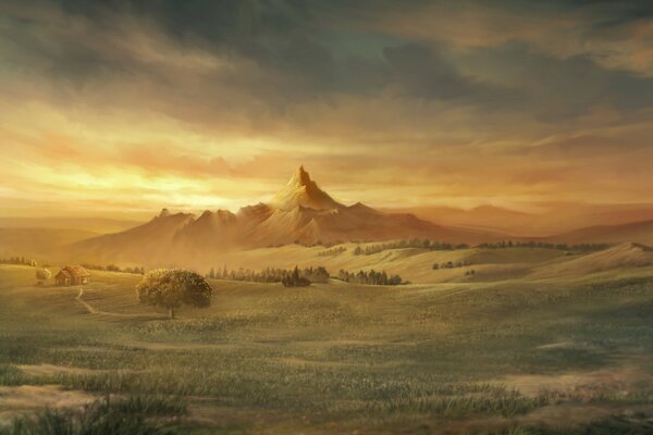 горы рисунок поле дом2880 x 1080, 359 кБ