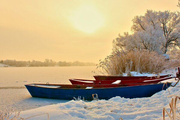 лодки зима вечер река снег1920 x 1200, 414 кБ