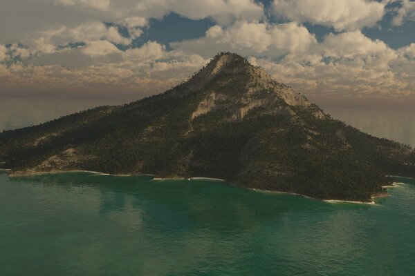 пейзаж остров гора пальмы море небо2400 x 1200, 343 кБ