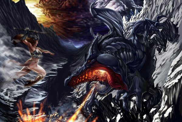 дракон девушка бой вечер смерть1600 x 1156, 462 кБ
