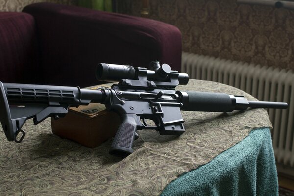 Снайперская винтовка с прицелом лежит на столе1920 x 1200, 394 кБ