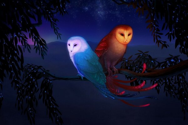 фентези птицы совы стихии огонь вода горы звезды дерево ветка1680 x 1050, 274 кБ