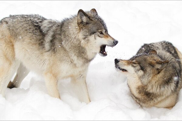 природа зимние животных зима животные волки пара1920 x 1080, 434 кБ
