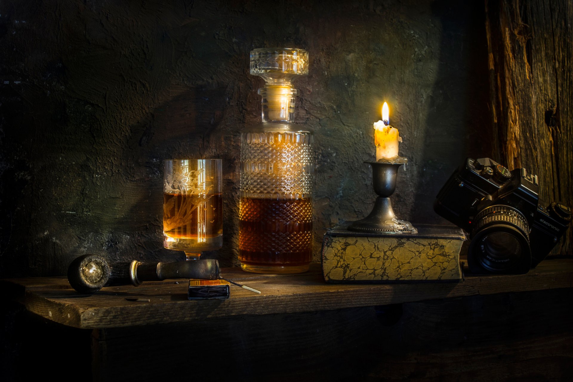 что в графин свеча бутылка стакан книга фотоаппарат трубка1920 x 1280, 336 кБ