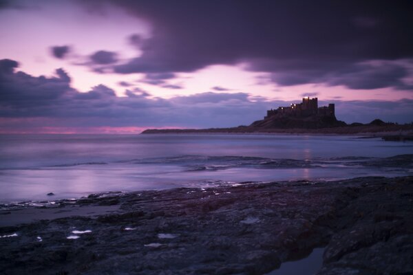 великобритания англия бамбург замок море побережье вечер фиолетовые небо облака замок берег сиреневое фиолетовое тучи пейзаж1920 x 1280, 191 кБ
