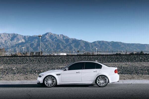 bmw м3 e90 белый колеса бмв профиль диски небо горы1920 x 1272, 470 кБ