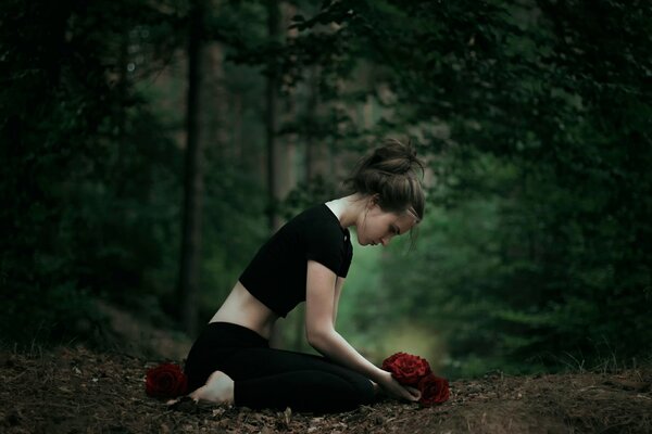 подарок девушка лес бутоны розы вики1920 x 1297, 215 кБ