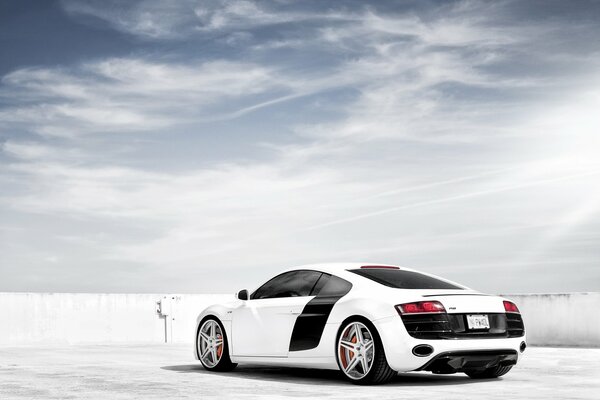 audi r8 v10 ауди р8 в10 суперкар белый вид сзади тюнинг диски небо1920 x 1200, 218 кБ
