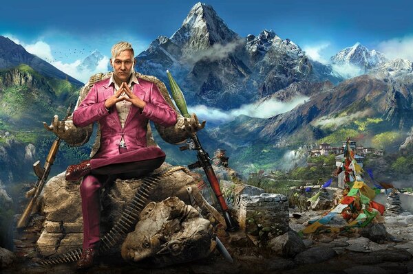 far cry 4 ubisoft оружие небо облака горы снег взгляд кират паган мин костюм рпг статуя2033 x 1080, 572 кБ