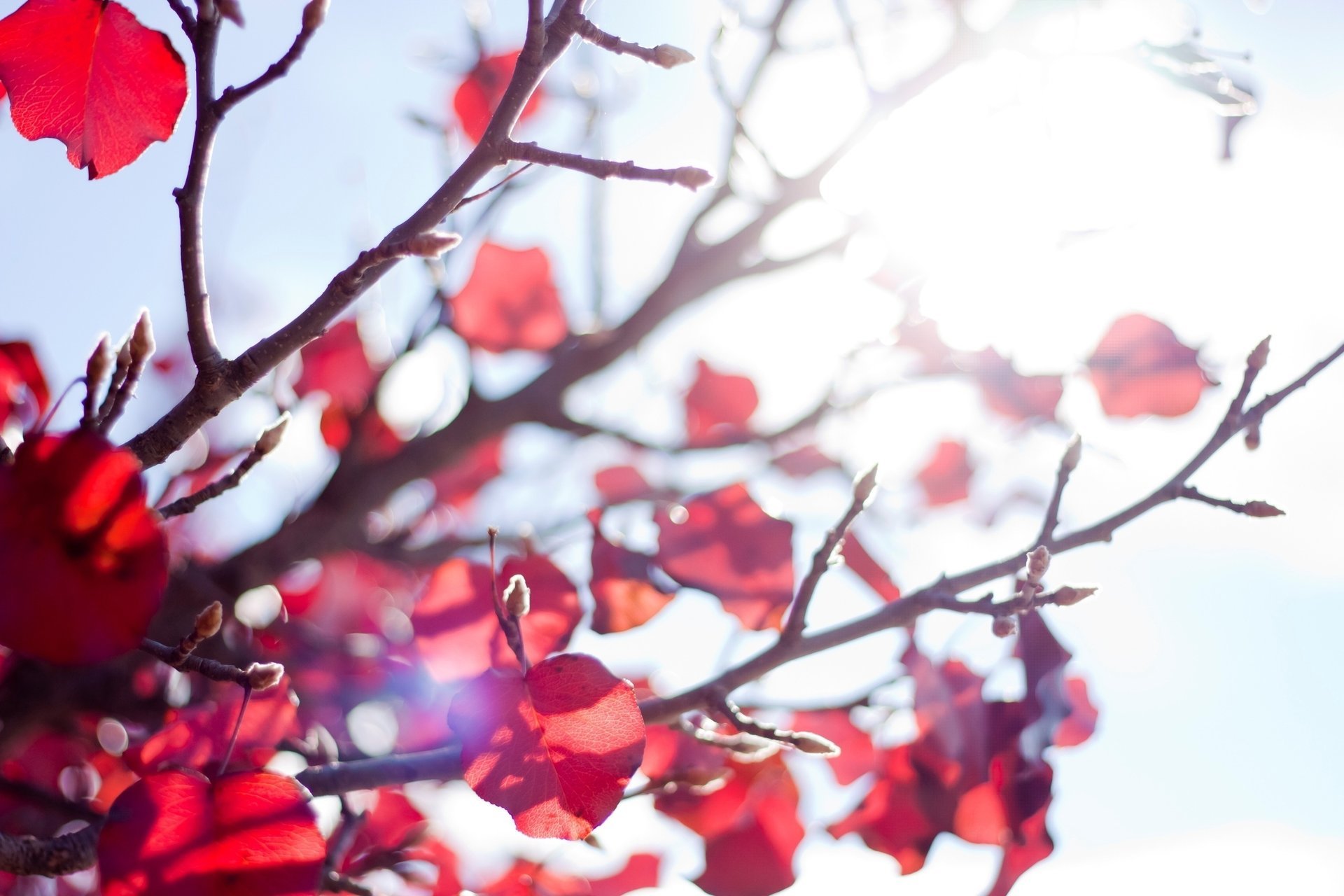 Солнце и ветви с ярко красными листьями1920 x 1280, 229 кБ