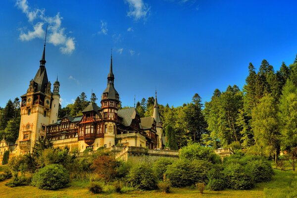 небо лес деревья замок дом башня1920 x 1080, 649 кБ