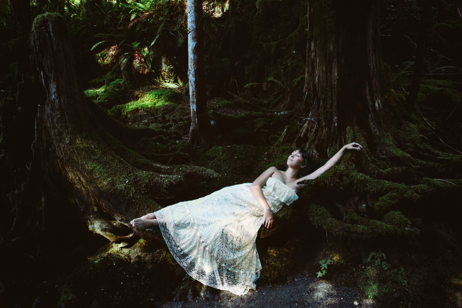 лес деревья мох девушка отдых1920 x 1280, 374 кБ