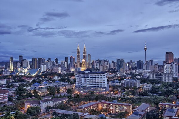 куала-лумпур малайзия столица капитала дома здания небоскребы вечер небо тучи1920 x 1200, 545 кБ