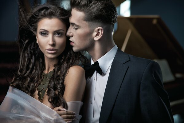 девушка парень взгляд поцелуй ветер монисто пиджак