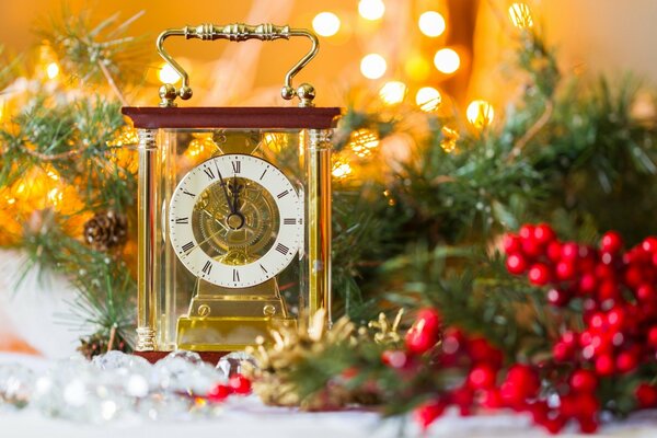 новый год ситуация новогодние украшения часы без пяти полночь бусы мишура снежок ситуации макро1920 x 1477, 504 кБ