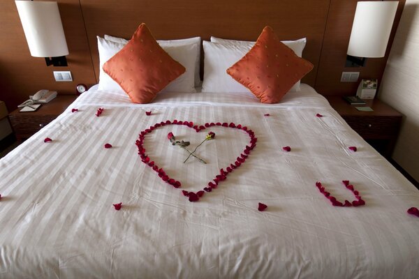 интерьер дизайн комната спальня цветы розы лепестки сердце любовь признание письмо кровать подушки1920 x 1200, 277 кБ
