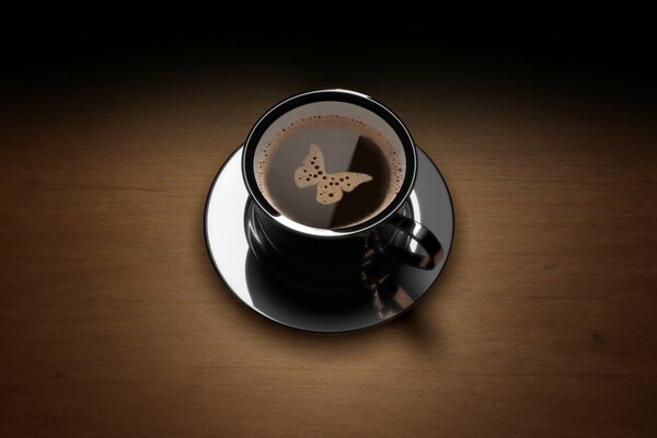 Творческий подход к напитку кофе с изображением бабочки1680 x 1050, 137 кБ