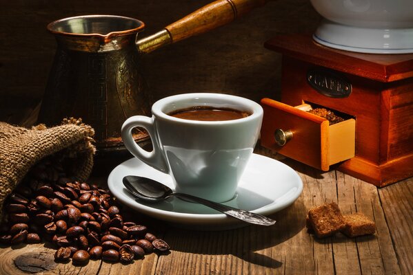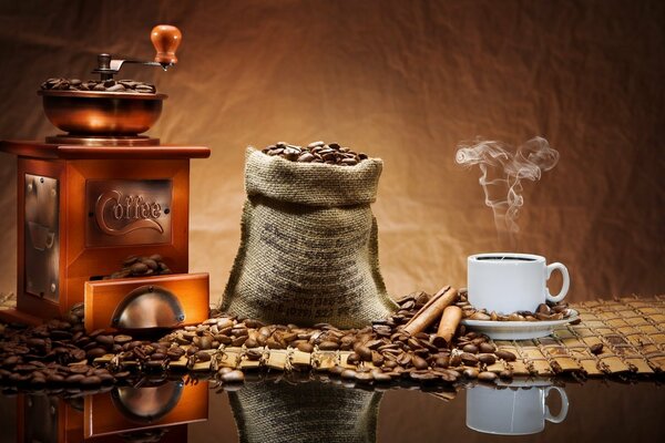 Кофе, кофемолка, чашка ароматного кофе1920 x 1200, 360 кБ