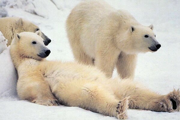 папа лежит снег медведи семья белый1920 x 1200, 475 кБ