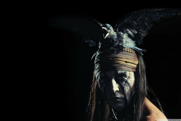 одинокий рейнджер джонни депп тонто актер индеец лошадь птица ворона1920 x 1278, 306 кБ