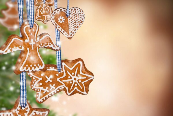 Имбирные печенья в форме ангела, колокольчика, звезд, висящие на новогодней елке1920 x 1448, 330 кБ