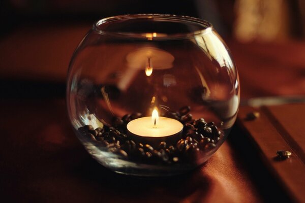 Свечка в банке с кофе на столе1680 x 1050, 163 кБ