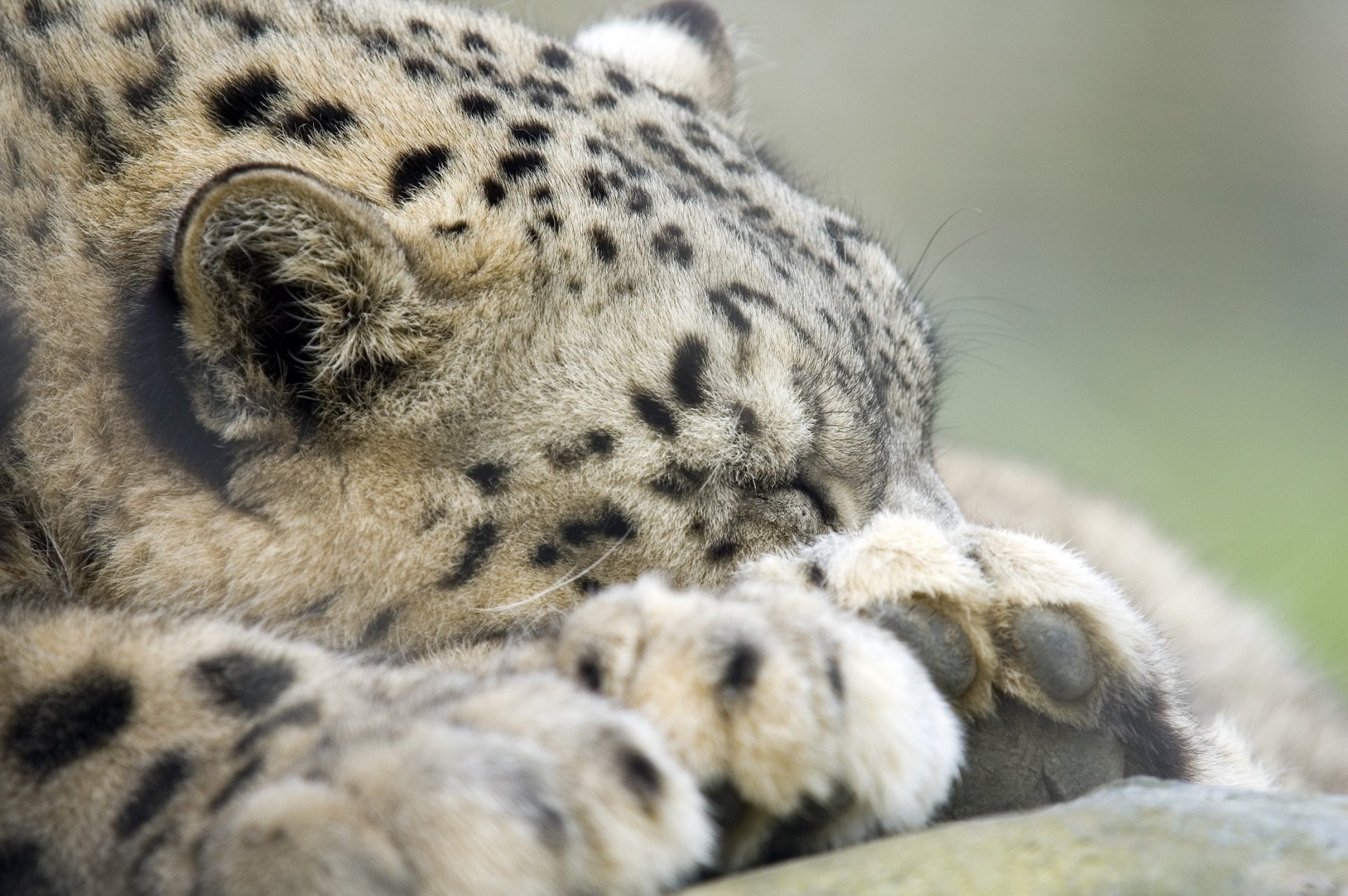 снежный барс ирбис дикая кошка хищник морда лапы сон отдых1920 x 1276, 444 кБ