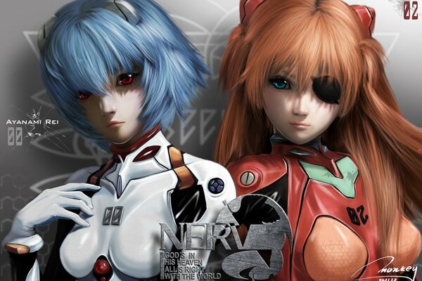 neon genesis evangelion сорю asuka langley аянами рэй девушки надписи костюм повязка ушки1920 x 1376, 403 кБ