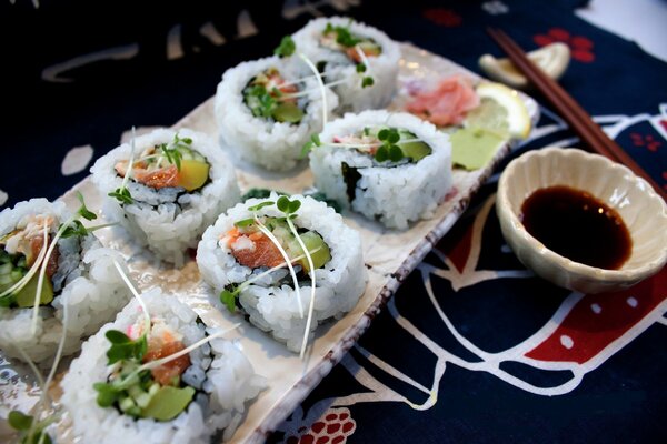 суши роллс япония палочки для еды соевый соус морепродукты роллы япония еда суси японская кухня рыба рис авокадо лосось зелень огурец краб1920 x 1280, 318 кБ
