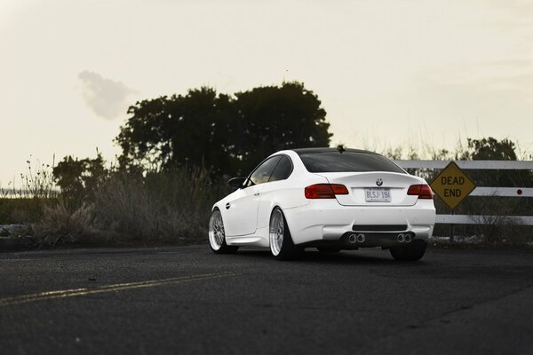 bmw м3 e92 белый бмв задок дорога тупик