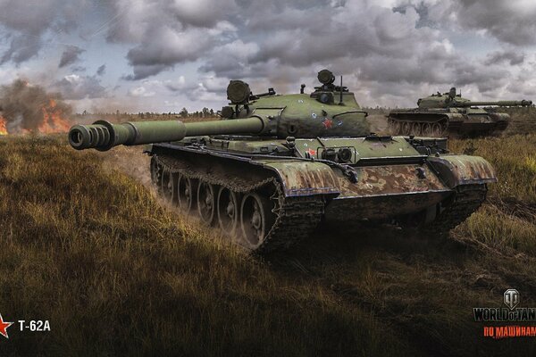 мир танков средние советские танки т-62а поле трава дым огонь облака1920 x 1080, 570 кБ