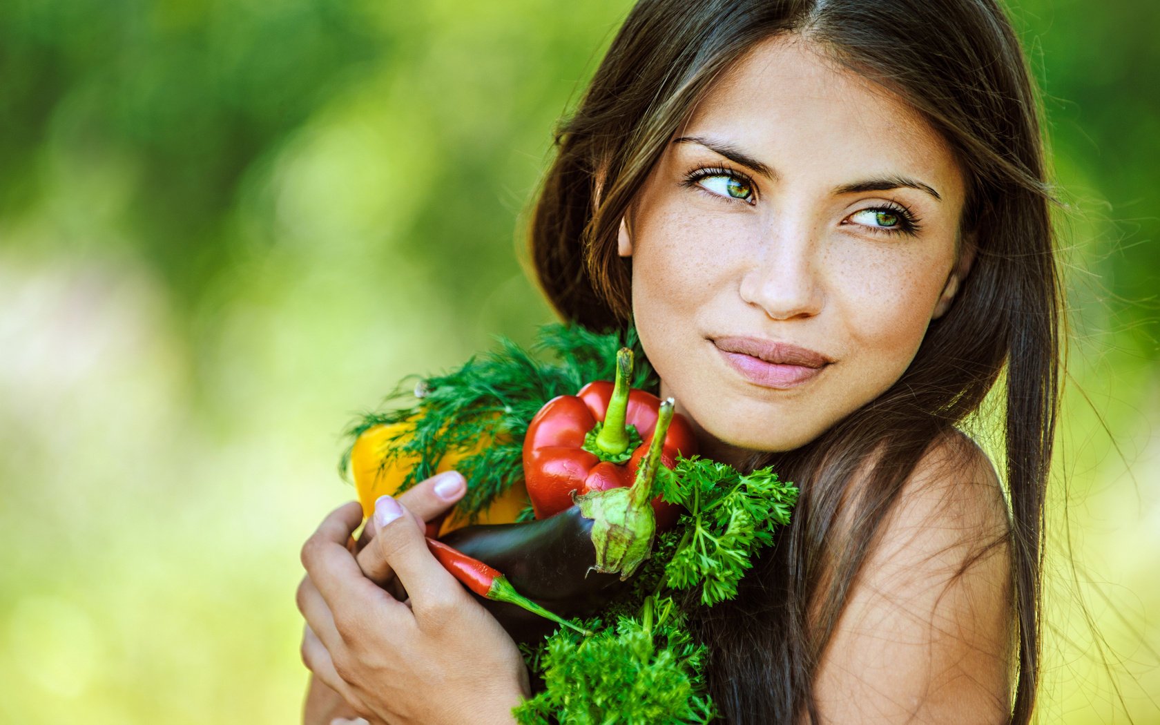 Девушка с овощами и шикарной улыбкой1680 x 1050, 265 кБ