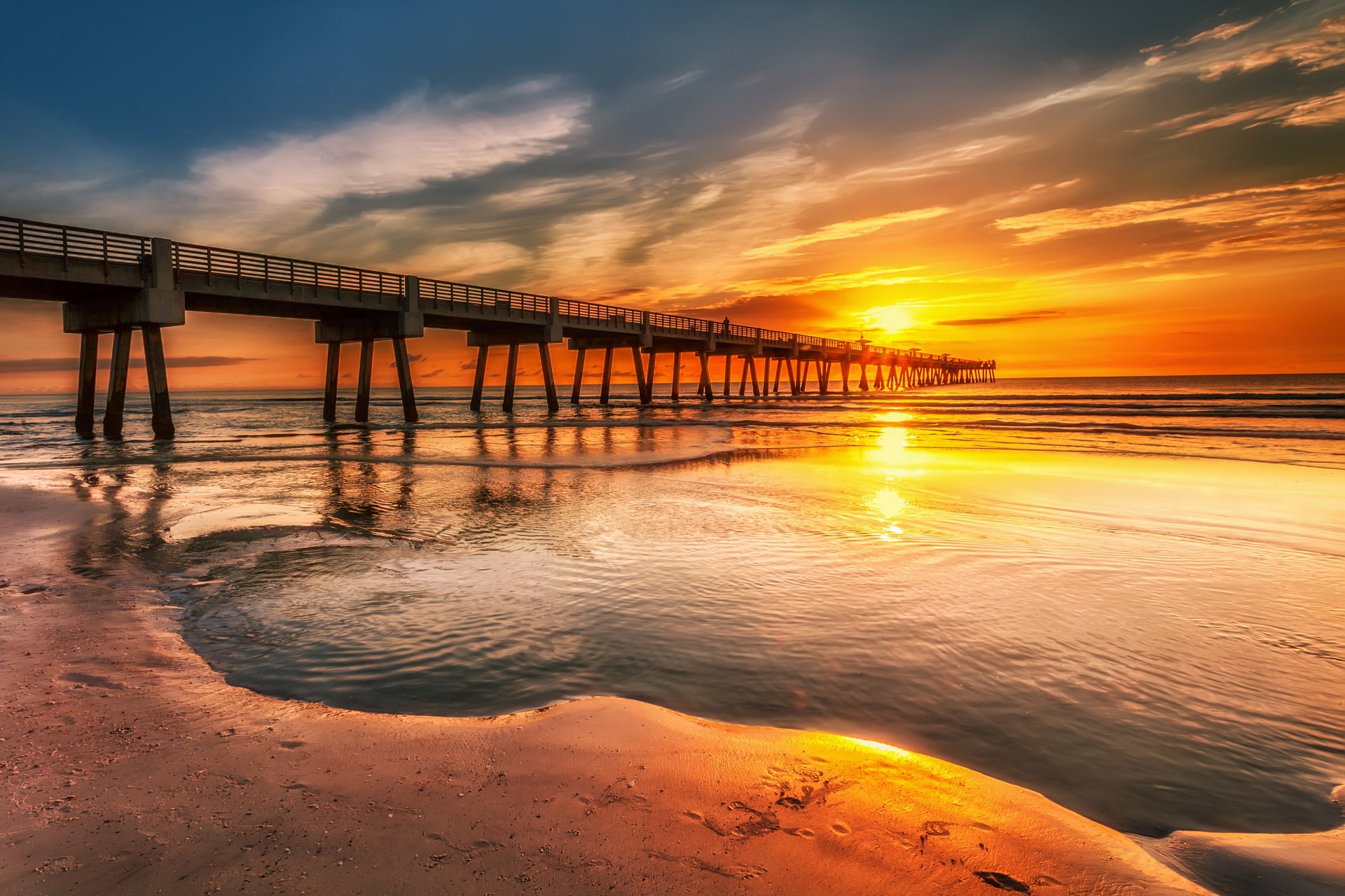 небо облака закат пирс причал море берег песок следы люди1920 x 1280, 432 кБ