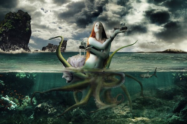 море девушка щупальцы1920 x 1393, 501 кБ