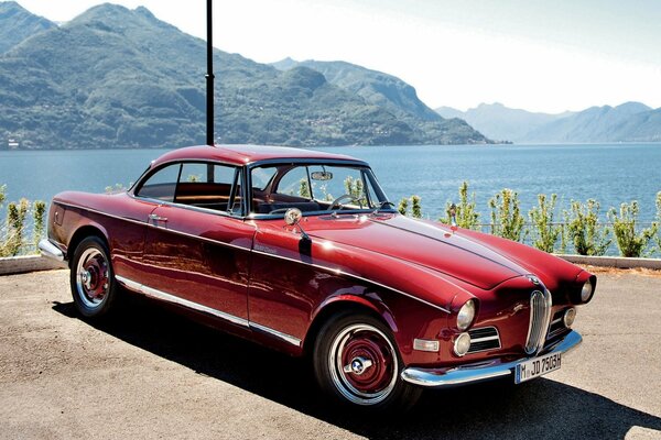 bmw купе 1956 бмв красный передок классика вода горы небо1920 x 1200, 458 кБ