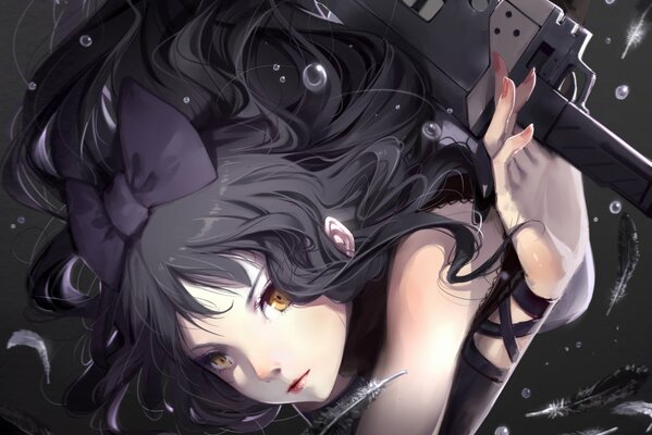 арт cici аниме красный белый черный желтый блейк белладонна девушка перья бант оружие пузыри