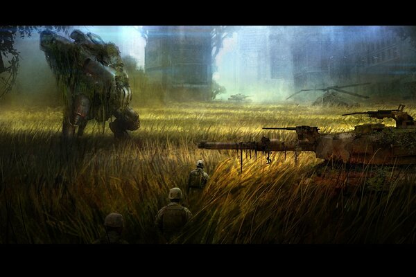 Рисунок робот люди и танк1920 x 1080, 312 кБ