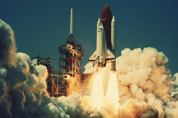 ракета пуск установка запуск огонь дым вышка двигатели ускорение ночь1920 x 1200, 161 кБ