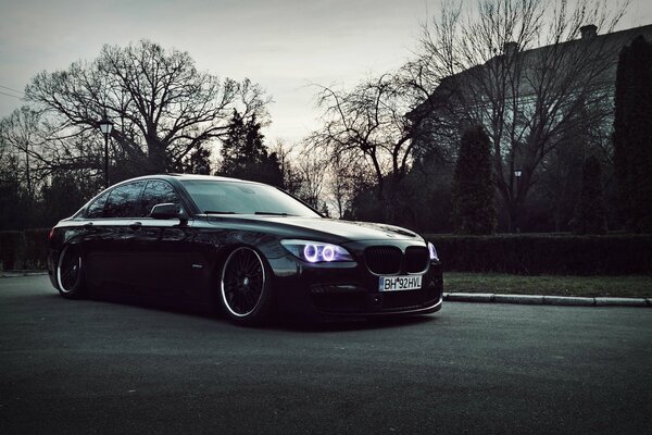 bmw f01 7-й серии бмв тюнинг позиция диски фары темный черный