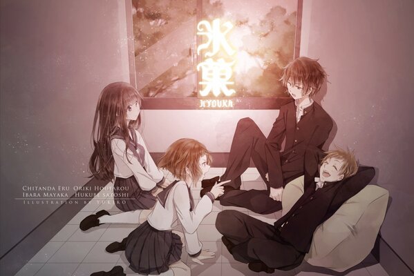 карие глаза seifuku группа черные волосы fukube сатоши фиолетовые глаза лепестки ibara маяка коричневые волосы1680 x 1315, 218 кБ