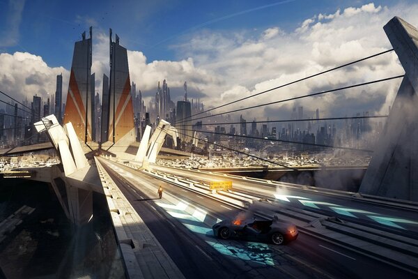 арт grivetart город мост человек машина огонь тросы небоскребы2012 x 1080, 351 кБ