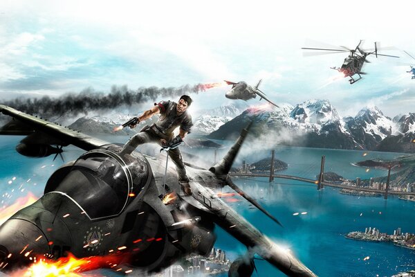 just cause 3 бой крюк оружие остров вода ракета небо самолёт дома avalanche studios square enix