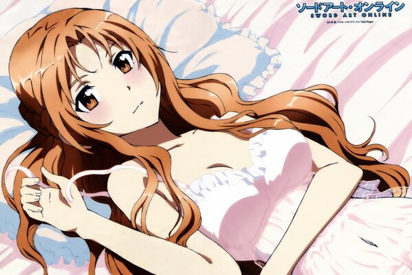 карие глаза кровать длинные волосы юки асуна коричневые волосы