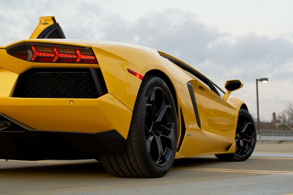lamborghini aventador lp700-4 желтый ламборгини авентадор задок свет фар асфальт полосы1920 x 1280, 246 кБ