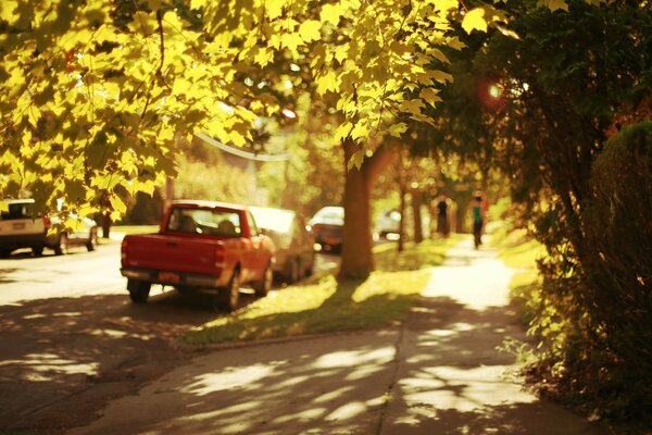 разное настроения природа листья листочки дерево деревья тропинка дорожка люди человек фигура машина машины тень солнце улица город день фон обои широкоформатные полноэкранные широкоэкранные широкофор2000 x 1200, 401 кБ