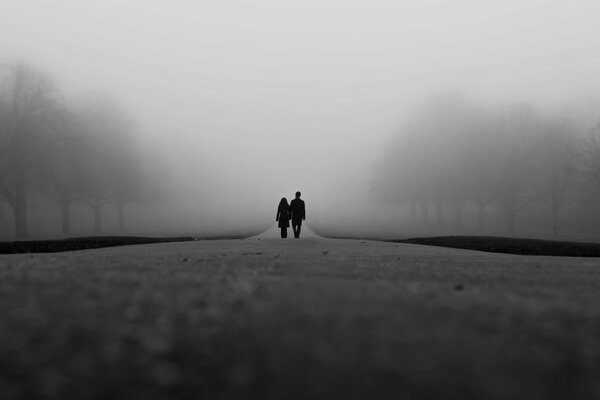 настроения темнота девушка парень мужчина женщина силуэты парочка пара влюбленные тишина дорога асфальт туман деревья ночь фон любовь обои широкоформатные полноэкранные широкоэкранные широкоформатный 1920 x 1200, 112 кБ