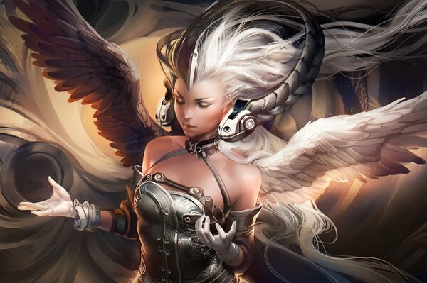 арт sakimichan девушка крылья ying yang богиня наушники коса1920 x 1206, 335 кБ